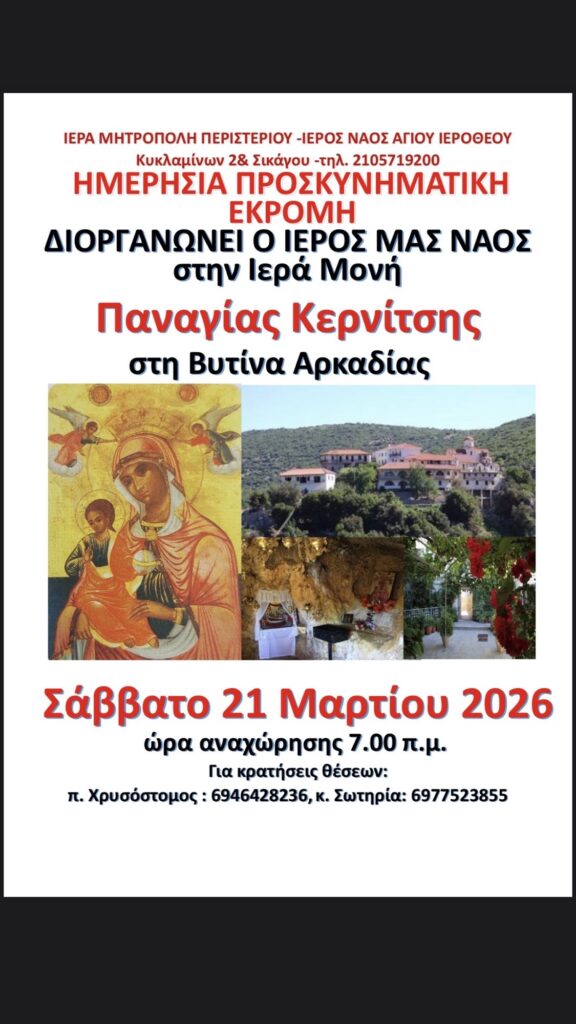 Σάββατο 18 Νοεμβρίου : Ιερά Μονή Κερνίτσης Αρκαδίας