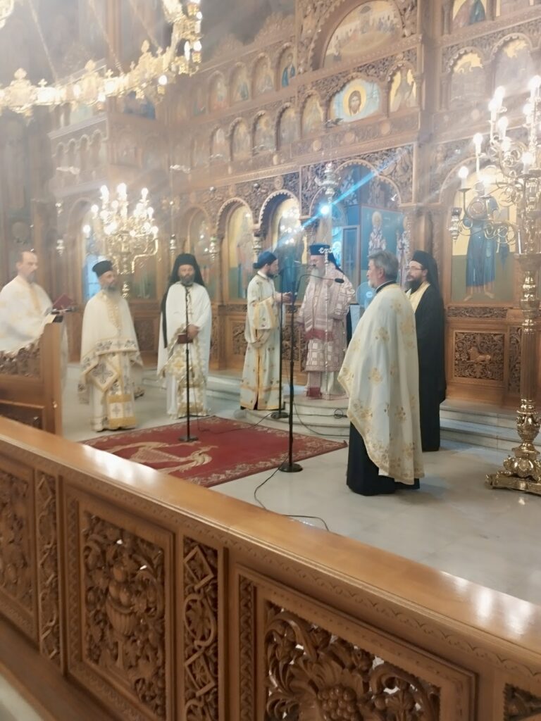 Θεία Λειτουργία και τεσσαρακονθήμερο Αρχιερατικό μνημόσυνο του μακαριστού ιερέως π. Παναγιώτου Αγγελοπούλου, κτήτορος του ιερού ναού, ιερουργούντος του Σεβασμιωτάτου Μητροπολίτου Περιστερίου, κ. Γρηγορίου.